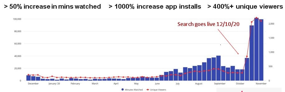 Search in all OTT ecosystems is so powerful, it is a required app feature for user acquisition